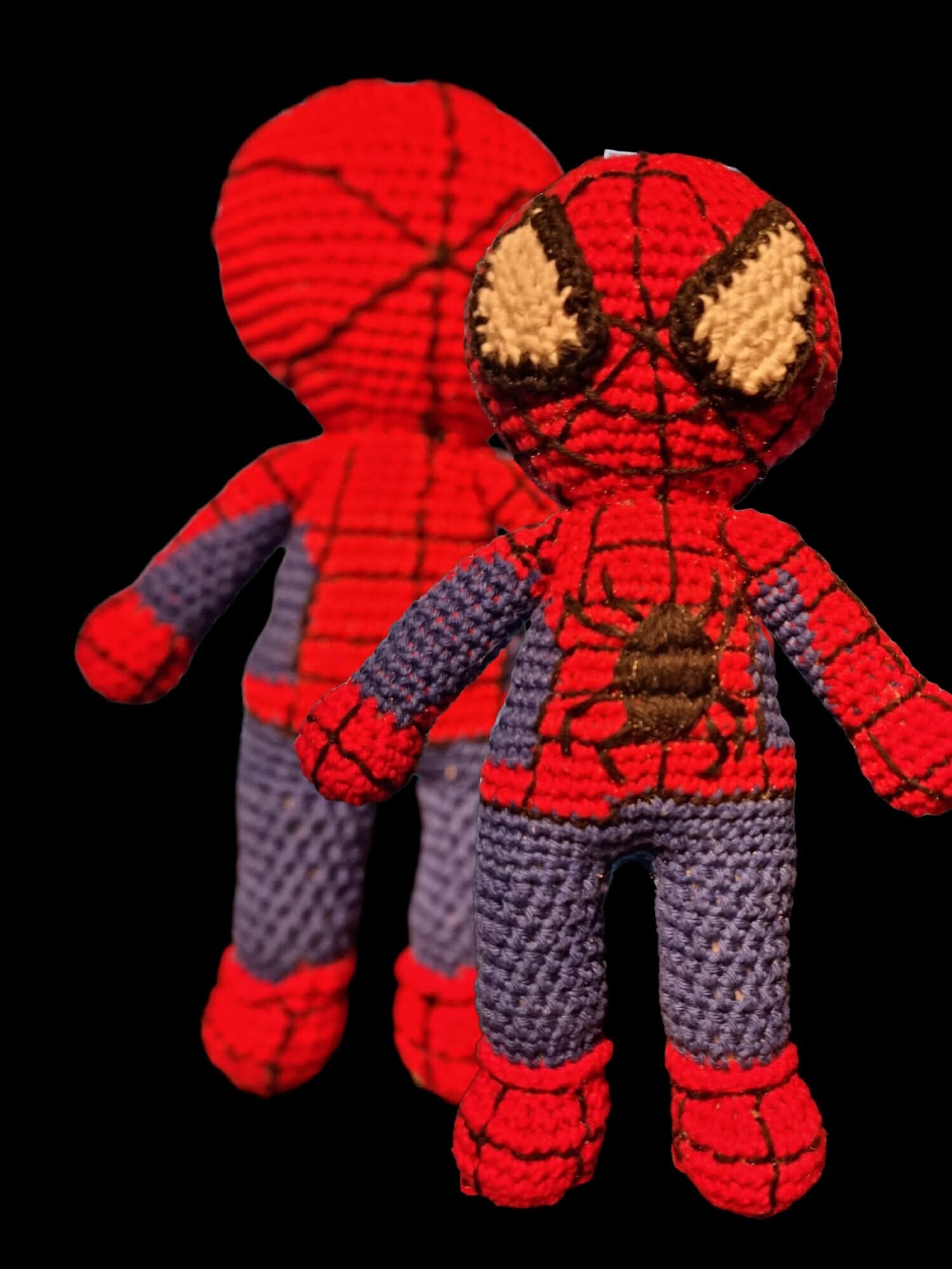 Spiderman er hæklet i blødt bomuld.