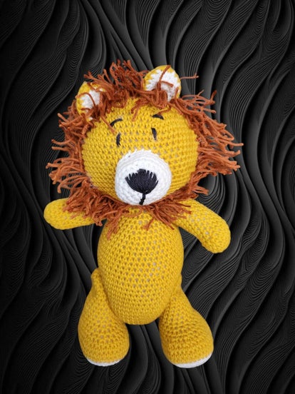 Sød løvebamse hæklet i lækker blød bomuldsgarn, og kan laves i ønskede farver.